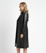 Artemis Women's Full-Grain Leather Double-Breasted Trench Coat with Belt