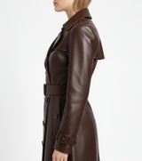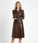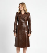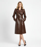 Unleash your inner fashionista with the Artemis trench coat, a beautifully sculpted mid-length masterpiece. Its sharp double-breasted front, broad notched lapels, and waist-cinching belt create an undeniably feminine silhouette. Crafted from the world's most exquisite full-grain leather, this coat promises lasting style and a luxurious feel. Choose between supple lambskin or bold crocodile-embossed cowhide to make a statement.