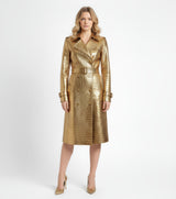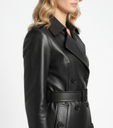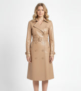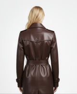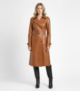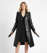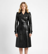 Unleash your inner goddess with the Artemis, a stunning mid-length trench coat crafted from premium full-grain leather. Its sharp double-breasted front, broad notched lapels, and waist-cinching belt create an effortlessly chic and feminine silhouette. Choose between supple lambskin for classic elegance or bold crocodile-embossed cowhide for high-impact texture, both designed for lasting wear. This meticulously tailored piece features discreet pockets, a back vent for ease, and full lining, making it your perfect statement coat.