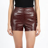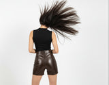 Unleash your inner fashionista with the Katya high-rise leather shorts, designed to flatter and elongate your silhouette. Crafted from the world's finest full-grain leather, choose between supple lambskin or bold crocodile-embossed cowhide for a luxurious touch. The contoured high waistband and sleek darts create a smooth, body-skimming fit, while a concealed back zipper maintains a minimalist look. Fully lined for ultimate comfort, these shorts promise a sharp, polished edge for any occasion.