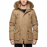 Men's camouflage velvet hooded jacket, thick windproof coat, medium-long warm men's parka, camo parka, new winter