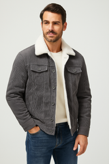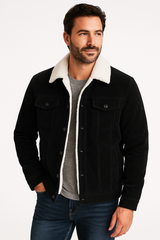 Elevate your wardrobe with this timeless corduroy sherpa jacket designed for effortless style and all-day comfort. The warm, textured corduroy exterior pairs perfectly with the plush sherpa lining, making it ideal for cool days and crisp evenings. Whether layered over casual essentials or styled for a night out, this piece balances rugged charm with refined sophistication. A versatile staple that brings both function and fashion to your everyday look.