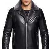 Men's Winter Leather Motorcycle Jacket - Fleece Lined Biker Coat with Thick Fur Collar - Stylish PU Slim Fit Overcoat