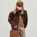 Unleash your inner fashionista with this fabulous suede jacket, blending vintage charm with modern flair. It's super comfy, offering easy movement while keeping you looking sharp and stylish all day. Dress it up or down, this versatile outerwear effortlessly complements any outfit, from casual jeans to elegant dresses. This timeless piece promises to be a lasting, fashionable addition to your wardrobe for seasons to come.