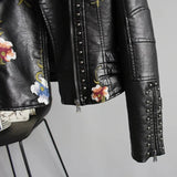| 1 - Women's White Floral Embroidered Leather Bomber Jacket - Spring Moto | |