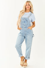 Mica Light Wash Denim Utility Straight Leg Overalls for Women - Stylish & Functional Workwear