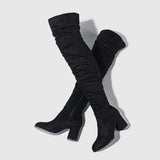 Stylish Women's Knee High Boots - Pointed Toe, Slouch Design, Block Heel - Perfect for Any Occasion