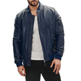 Blaze Ma-1 Blue Leather Bomber Jacket