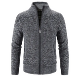 This men’s structured zip-up cardigan features a mock neck, contrast lining, and ribbed trim for a polished yet comfortable feel. Designed for cold-weather layering, it bridges the gap between knitwear and outerwear. A versatile option for casual outings or work-ready comfort.