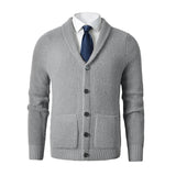 Men's Shawl Collar Button-Up Knit Cardigan with Front Pockets - Stylish & Comfortable Knitwear