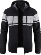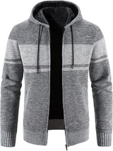 This classic piece merges the relaxed feel of a men's zip-up hoodie with the polished look of a knit cardigan. The lined interior offers extra warmth, while the drawstring hood and full zip design bring versatility for daily wear. Ideal for layering through colder months.