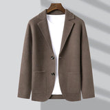 Men's Blazer-Style Cardigan with Lapel Collar & Patch Pockets - Stylish & Versatile Knit Jacket