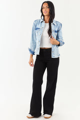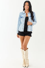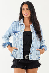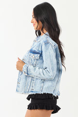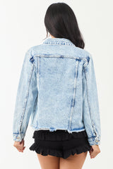 - This denim jacket features a retro wash and raw distressed hem for that effortlessly cool, lived-in look.