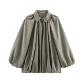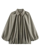 Women's Loose Fit Bomber Jacket - Long Puff Sleeves, Zip Front Closure, Stylish Casual Outerwear
