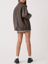 Women's Oversized Leather Bomber Jacket with Zipper Front - Stylish & Comfortable Outerwear