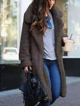 This women's long oversized winter teddy coat offers unmatched comfort and style for cold days. Featuring a plush texture and a lapel collar, it effortlessly elevates any casual outfit. Perfect for daily wear, it’s your go-to choice for modern outerwear for women.