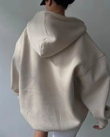 This women’s oversized pullover hoodie blends casual comfort with a unique open V-neck collar for a fresh take on a classic style. The relaxed fit and soft fabric make it perfect for all-day wear, while the roomy hood adds warmth and versatility. Ideal for pairing with jeans, leggings, or joggers for effortless everyday outfits.