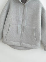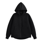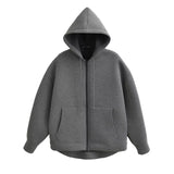 This women’s oversized zip-up hoodie combines a relaxed fit with practical features for all-day comfort. The full-length zipper allows easy layering, while the adjustable drawstring hood offers extra warmth when needed. Completed with spacious front pockets, it’s a versatile choice for casual outings, lounging, or layering in cooler weather.