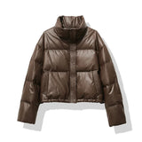 This women's puffer jacket features a mock neck and a short, relaxed fit for a stylish yet functional winter look. The quilted design offers reliable insulation, making it perfect for cold-weather layering. With its versatile style, this jacket pairs easily with both casual and urban outfits.