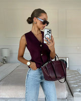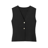 Women's Sleeveless Knitted Vest Top - Button-Front Design for Stylish Layering