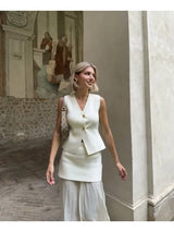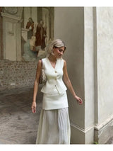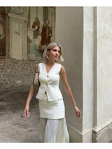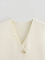 This button-front knitted vest is the perfect addition to your wardrobe, combining classic design with modern flair. Its sleeveless cut and elegant silhouette offer a polished yet comfortable look for any occasion. Pair it effortlessly with your favorite jeans or trousers for a refined outfit.