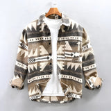 The Aztec Pattern Flannel Jacket is a standout piece in men's winter outerwear, offering a unique blend of retro charm and modern style. This jacket is available in two rich color options, dark brown and light brown, and comes in a wide range of sizes from S to 3XL, ensuring a perfect fit for everyone. Crafted by skilled artisans, this jacket promises not only warmth but also a touch of sophistication to any wardrobe. The jacket features a soft and thick flannel material, providing unparalleled coziness and warmth, making it ideal for cooler days and evenings. Its oversized fit offers a relaxed, casual silhouette that effortlessly elevates your streetwear ensemble. The classic Aztec-inspired prints add a vintage touch, infusing your wardrobe with character and timeless appeal. Each jacket is meticulously crafted, ensuring exceptional quality and attention to detail. This combination of comfort, style, and craftsmanship makes the Aztec Pattern Flannel Jacket a must-have for fashion-conscious individuals looking to embrace the nostalgic allure of retro fashion with a contemporary twist.
