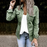 Introducing the Olive Green Women's Slim Fit Utility Jacket, a perfect blend of versatility and style for your fall fashion wardrobe. This jacket is available in three classic colors: Black, Green, and Gray, and comes in a range of sizes from S to 2XL, ensuring a perfect fit for everyone. The jacket features a timeless button-up design that exudes a relaxed, casual vibe, making it an ideal choice for everyday outfits. Crafted from a soft, breathable blend of polyester and cotton, it offers maximum comfort and ease of wear, making it perfect for transitional seasons or cooler days. The jacket's design is not only stylish but also practical, allowing for easy pairing with jeans, skirts, or dresses for a chic, effortless look. One of the standout features of this jacket is its classic button-up design, which provides a timeless, casual look suitable for both casual and semi-formal occasions. Additionally, the jacket is designed for a comfortable fit with ample freedom of movement, ensuring you stay comfortable throughout the day. Made from high-quality materials, this jacket promises durability and long-lasting wear, even with frequent use. The jacket's specifications include a normal fit, tailored for women, and a size range from S to 2XL, with detailed measurements provided for bust, length, and sleeves to ensure the perfect fit. Whether you're dressing up for a day out or keeping it casual, this utility jacket is a versatile addition to any wardrobe.
