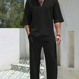 This breezy duo keeps you cool while looking effortlessly sharp from sunrise to sunset. The relaxed fit and three-quarter sleeves offer a laid-back vibe perfect for beach strolls or backyard barbecues. Crafted from a breathable blend, these pieces move with you for ultimate comfort during those warm summer days. Simply toss them on with your favorite sneakers for a look that is as easygoing as your weekend plans.