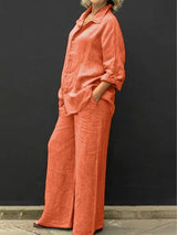 Rock that effortless vibe with this breezy linen blend set that keeps you cool while looking absolutely fire. The relaxed blouse pairs perfectly with flowy wide-leg pants for a silhouette that screams weekend chic. Whether you're grabbing brunch or lounging at home, this soft fabric feels like a gentle hug for your skin. It's the low-maintenance outfit that delivers high-fashion impact without any morning wardrobe drama.