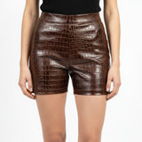 Slip into the Katya High-Rise Leather Shorts and experience instant elegance, designed to flatter your figure with a streamlined, leg-skimming cut. Crafted from the world's finest full-grain leather, these shorts boast a contoured high waistband that sculpts and smooths like a dream. Choose between supple lambskin that molds to you or bold crocodile-embossed cowhide for a statement texture. With a concealed back zipper and polished turned hems, these fully lined beauties offer supreme comfort and a sleek, minimalist profile for any occasion.
