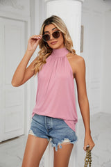 Flaunt your summer style in this chic halter top featuring a flirty lace-up back design. The breathable, airy fabric keeps you feeling fresh and cool whether you're at a garden party or a casual brunch. Its tailored fit effortlessly highlights your silhouette while pairing perfectly with your favorite denim shorts. This versatile piece is a wardrobe staple that stays vibrant and keeps its shape wash after wash.