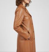 Step out in style with this elegant real leather single-breasted coat, designed to effortlessly blend timeless tailoring with modern sophistication. Crafted from premium lambskin or optional bold snake-embossed cowhide, it offers a luxurious feel and a flattering A-line silhouette. Enjoy practical features like discreet hand pockets, a back vent for movement, and a comfortable full lining. This versatile piece elevates any outfit, from casual denim to chic dresses, making you look fabulous.