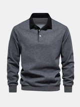 This cotton-blend sweatshirt brings a sharp polo collar to your favorite weekend pullover for a look that is both smart and snug. The soft fabric and classic button placket make it the perfect partner for your go-to jeans or lived-in joggers. Whether you are heading to a casual Friday or a coffee run, this regular-fit essential keeps you looking polished without any effort. It is an ideal style choice for staying comfortable while keeping your fashion game on point.