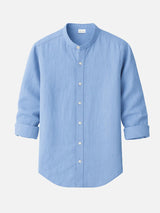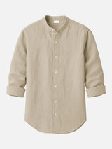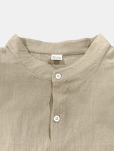 Stay breezy and look sharp while sipping cocktails by the coast in this airy linen blend. The modern band collar adds a touch of effortless sophistication to your sun-drenched holiday wardrobe. With superior moisture management and a relaxed drape, you will stay cool from sunrise to sunset. It is the ultimate lightweight essential for every tropical getaway or weekend island escape.