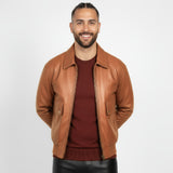 Unleash your inner style icon with this premium lambskin leather blouson jacket, a timeless classic redefined for the modern man. Its crisp shirt collar, sleek zip front, and tailored silhouette ensure a sharp look perfect for any occasion. Crafted from the world's top 5% full-grain lambskin, it offers unmatched quality, comfort, and durability. With convenient flap pockets and a breathable lining, this jacket combines effortless cool with everyday practicality.