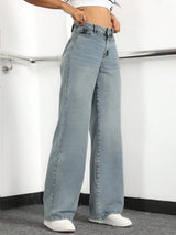 Dames Hoge Taille Wijde Pijpen Denim Jeans - Lichtblauw Casual - Perfect voor Dagelijks Gebruik