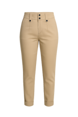 Elevate your casual look with these stylish high-waisted cargo pants. Featuring a flattering tapered fit and convenient cargo pockets, these trousers combine practicality with modern design. The solid khaki color and ankle-length cut make them a versatile addition to any wardrobe, perfect for creating a chic, minimalist or utility-inspired outfit. Crafted from a comfortable blend of fabrics, they are ideal for everyday wear, from running errands to a casual night out.