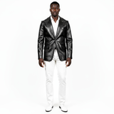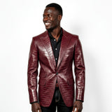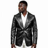 Unleash your inner style icon with this sharply tailored, single-button leather blazer. Crafted from the world's top 5% full-grain leather, it offers both supple comfort and lasting character or a bold, architectural crocodile-embossed finish. Designed with sculpted peak lapels, lean proportions, and meticulous finishing, this jacket ensures you look effortlessly dapper. It's the perfect statement piece to elevate any ensemble, from a smart roll-neck to casual dark denim.