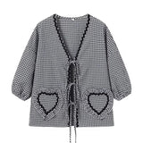 This breezy gingham blouse brings a dash of picnic-perfect charm to your daily rotation. With its playful ruffles and sweet front tie, you'll be turning heads from brunch to sunset strolls. The breathable cotton blend and relaxed fit keep things light and airy all day long. Pair it with your favorite denim for a look that's as effortless as a summer breeze.