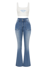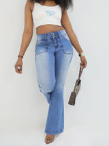 Women's Light Blue Flare Jeans - Comfortable Stretch Fabric, Figure-Hugging Fit, Elegant & Stylish Design
