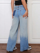 Women's Loose Fit Straight Jeans with Color Block Design | Casual Back Pockets & Slash Pockets | Machine Washable Denim
